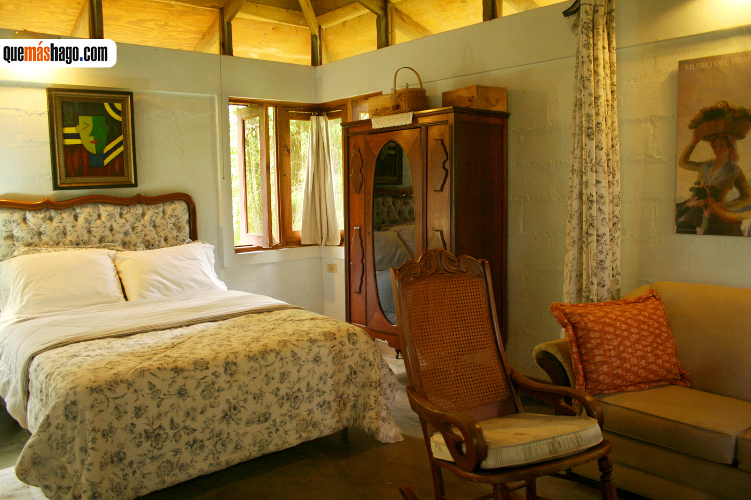 Este hotel, que cuenta con una extensa propiedad rural y con espacios diseñados para estimular el contacto con la naturaleza, dispone de 10 habitaciones cuya ambientación de estilo rústico crea una refrescante experiencia campestre. Cada una de las cabañas, construidas en pino y confortablemente amuebladas, cuenta con un pequeño refrigerador, ventilador de techo y baño privado. En ellas su propietaria ha colocado una vasta cantidad de antigüedades, pequeños tesoros familiares de gran valor sentimental, que complementan la decoración y la dotan de un amalgama de detalles único.
